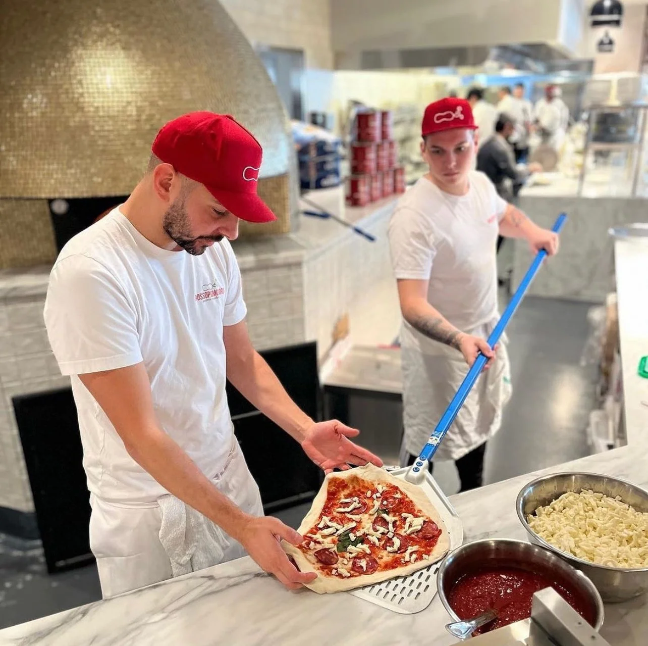 We are Rossopomodoro, a pizza company founded in Naples, Italy with a mission to bring traditional Neapolitan pizza to your hometown. Creamy mozzarella, charred yet elastic crust, and sweet San Marzano tomatoes make for a pizza so delicious you will be singing along with our vibrant pizzaioli (pizza makers).